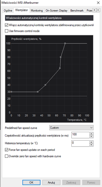 The default GPU cooling configuration is generally too weak, unlike new CPUs , GPU cores are more delicate and should be cooled at all costs, unless you want to have artifacts and other problems after the warranty expires because the section/memory will start to break down due to damage from too high temperatures especially as you block the graphics undervolting. Just because the GPU core doesn't exceed 71°C doesn't mean the memory doesn't have much higher temperatures 🙂