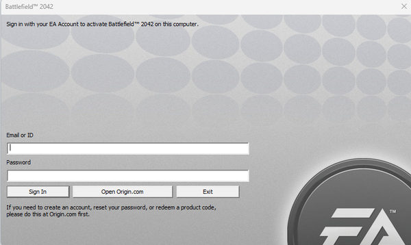 Every time I try to start either BF2042 or BFV, this window pops up. If i put in my info, it tells me I dont have internet. Tried repairing the games, rebooting, reinstalling the EA app. The games worked fine on tuesday. BF2042 is on steam and BFV is on the EA app. Makes no difference where I launch from. BF2042 launches fine on another PC in the household, so not any network firewall blocking it.