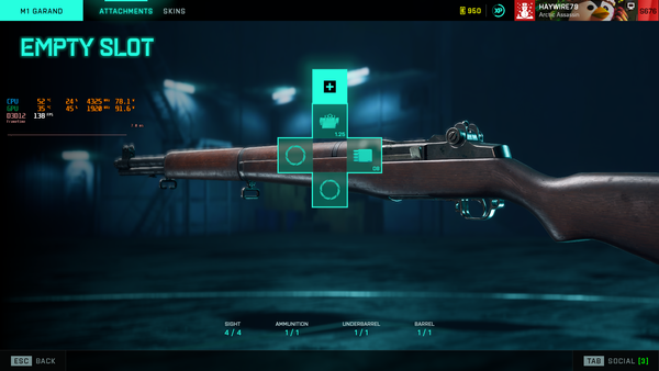 Grand M1 not saving scopes and skin. I have to set them every time wen i open the game. If i set them and close the game but still loged in in EA App and start the game again i have to set them. No scopes or skin on M1 Grand {see screenshot103} Scopes and skin enabled {see screenshot104}