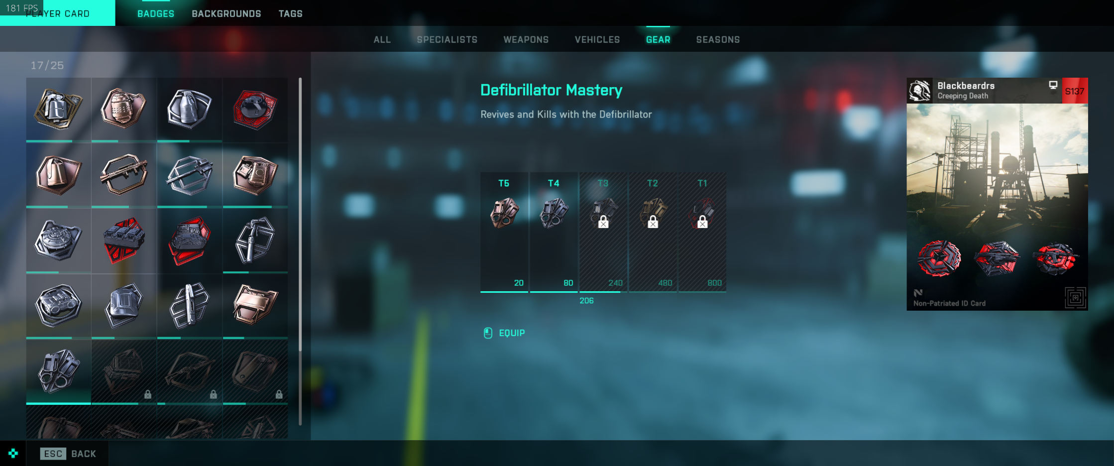 Summarize your bug Equipment, or assists are not being accounted with the respective class or equipment/weapon or vehicle, correct number is shown in player profile but not for the Tier system. Example 1, Sundance grenades, #2 Falk revive paddles