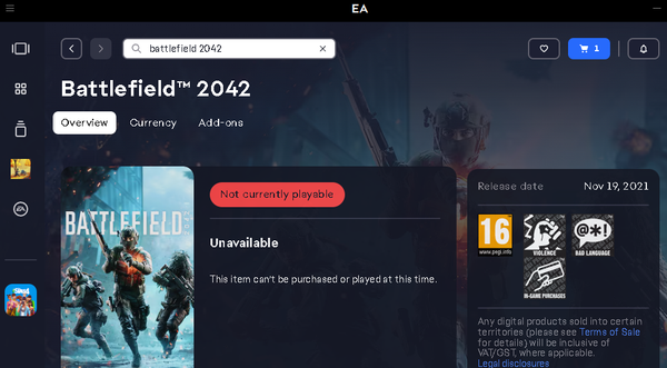 This often happens when the age of your account does not meet the requirements for the game in question, BF2042, which is prohibited for players under the age of 16.