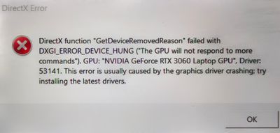 PC - GetDeviceRemovedReason failed with DXGI_ERROR_DEVICE_HUNG on ROG G15 Laptop