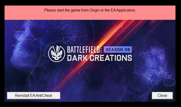 Then a splashscreen with a picture of Season 6 appears, it shows for a few seconds, then disappears and EA App unfolds.