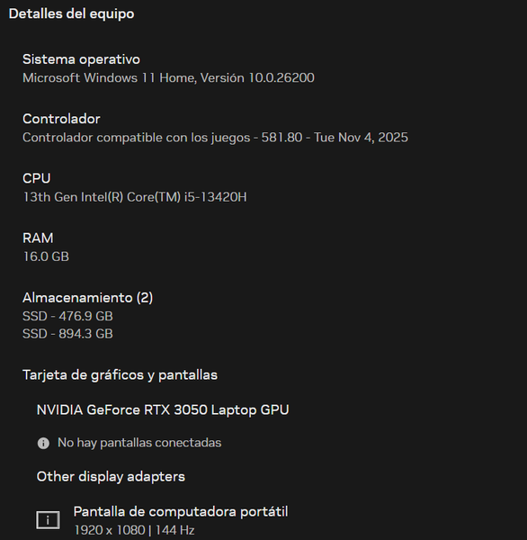 Yo juego desde mi laptop y esta son las especificaciones . Aora mismo voy a actualizar drives y otros controladores que quiza puedan causar el problema