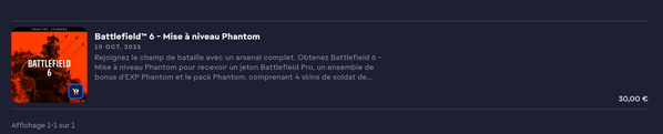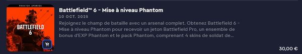 Hier j'ai acheter l'édition Phantom de BF6 PC sur EA PLAY pour 99,99€ avec Paypal. Valider, confirmer et débiter via mail par EA.