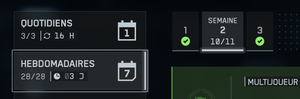Bonjour, Suis je le seul dans ce cas ? : Tous les défis des 3 semaines sont terminés, la semaine 1 est cochée, la semaine 3 aussi mais la semaine 2 reste à 10/11 : On voit bien également à gau...