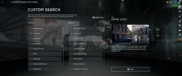 Chciałem podnieść kwestię layoutu w "Custom Search". Kiedy chcę wybrać mapy, muszę scrollować listę map i trybów.
