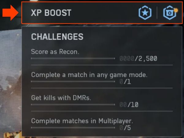 Um den XP-Boost-Inventar anzuzeigen, wähle im Hauptmenü „Trainingsgelände“ und dann „XP-Boost“ im Menü oben rechts.