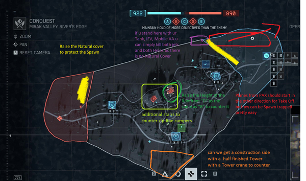 (Sniping, RPG on Infatry sniping MG Dauer feuer usw... und der PAX Spawn is geschützt während der NATO Spawn komplett offen ist)