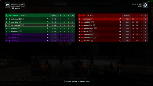 und nochmal Wenn das Matchmaking so suchen würde wie EA es sagt dann müsste die Suche Länger Dauern und Gegner nicht so eine Ping haben . auch mein Ping ist zum Server nicht der Normal Ping von Berlin Nach Frankfurt ist immer zW 16 bis 19 uhrzeit abhängig . die Suche in BF ist aber so 123 Start im Spiel und nicht auf DE Server . es macht kein Fun so zu spielen den es gibt nurProbleme , werfe Brand Granate . gegner bekommt minimal schaden wenn ich in brand bin TOT da kann ich machen wass ich will . ich werfe Brand renne weg 1sec Später ich brenne TOT . Gegner killen hinter Deckung oder machen one hit kills . Tanks killen mich wall . ich selber kann das aber nicht . wenn ich Leute Treffe kommt nur minimal schaden an selbst wenn ich auf Kopfe Treffe und schaden mit 99% mache muss nachladen Gegner mit 1% leben killt one hit . und das ist nur auf so servern wie auf dem BILDERN !