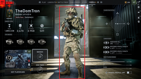 Go to the class/loadout that you want to be in your profile. Equip the skin and weapon you want to show on your profile. Then go to the far left bottom of the screen to loadout 1. Click on that and at the bottom of the screen it should say “choose profile” or “show profile”… something like that.. and the associated key to press. I think it’s Y in Xbox. Then go check your profile it should be changed.