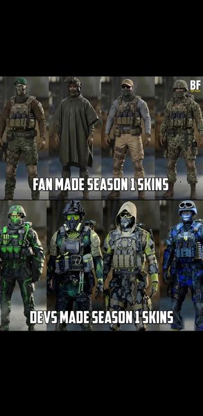Dear BF6 Devs...you told us that this game was getting back to realism and grounding us in realistic gameplay and characters. We want the skins at the top....not the ones at the bottom.