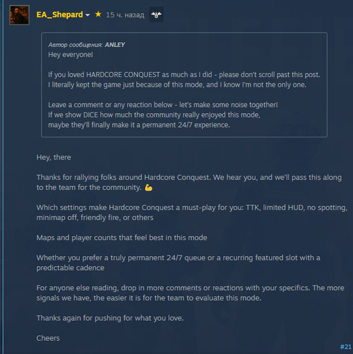 I also want to add something here in the EA community. I’ve already mentioned the main topic on Steam — I won’t spam it again. But I still want to share some important points here as well.