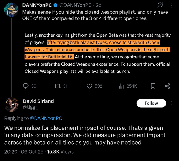 So just found out about the rediculous decision to stick to Open Weapons, whats even more annoying about this is the shady way of dealing with it and providing false/scewed data, this is pretty much how Activision would deal with something like this.