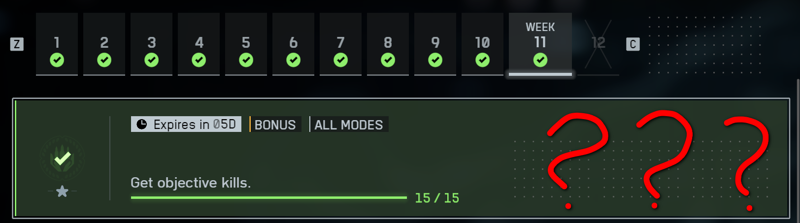 1 ReplyReplies sorted by Newestno_One31Rising Veteran1 day agoSame issue for me, week 11 no reward for the bonus challenge