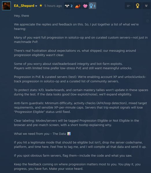 • The Problem is the System, Not the Players: The initial XP farms were a predictable consequence of the tool. The fact that the server capacity issue is still prevalent shows that the XP nerf was a misguided attempt to mask a systemic infrastructure problem, not a solution to farming.