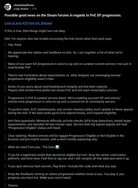 I am extremely disappointed, and I know I'm not alone, with the decision to drastically reduce XP progression and unlocks on PVE Portal servers. This reversal, just days after launch, is a massive blow to the community and directly contradicts the promises made about the Portal feature.