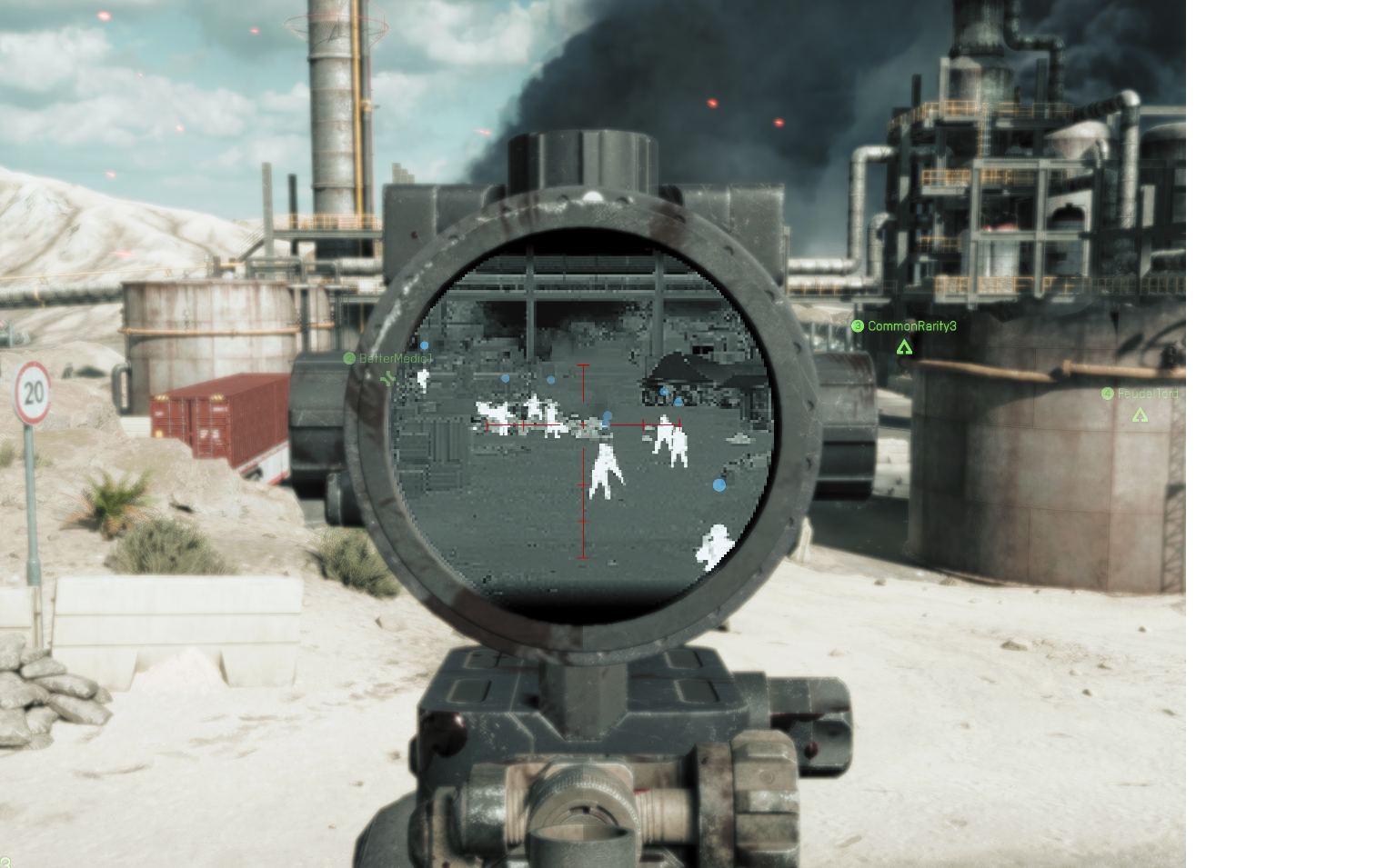 Well I've been seeing clips of thermal scopes that are crystal clear over 100m. The only thing i can see in common is that it is a console player.