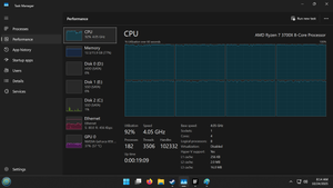 Look at the GPU info on the bottom left. It's only at 57%!!!. The CPU as you can see its at 100%. Hell even BF2042 CPU Info is less that that!