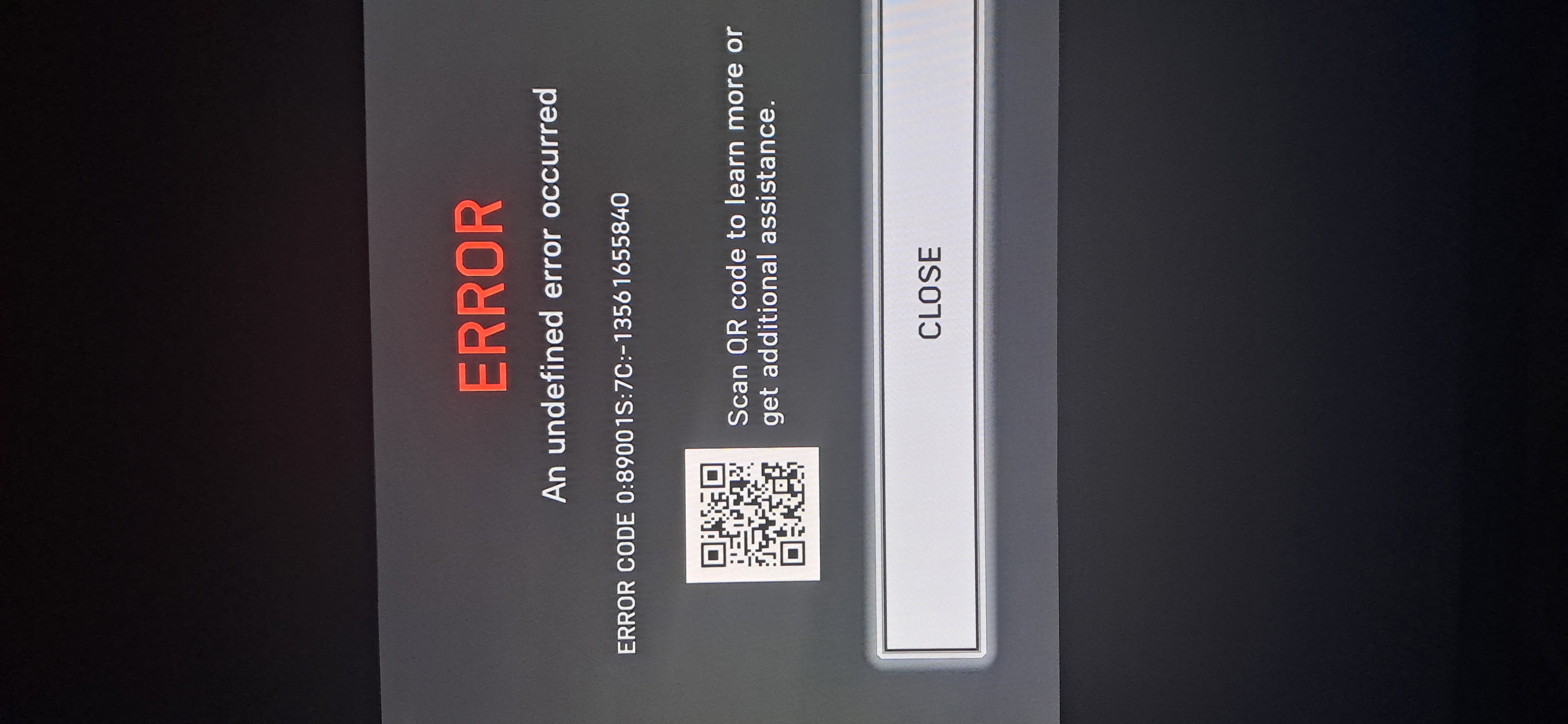 I’m getting the same error code. I tried on my other account that my son uses and it worked fine. So, I’m not sure what is going on.