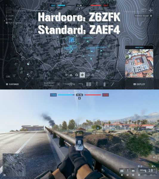 - "Golf Course - Custom Bots - Infantry Conquest": 20 v 20 small conquest at golf course with many objectives in close proximity. The chaos some people crave.