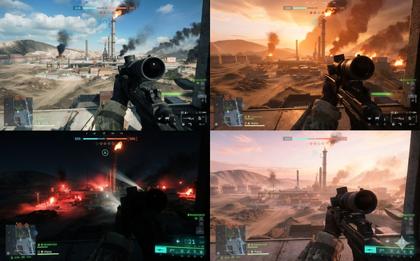 Al mediodía, el combate favorece enfrentamientos de larga distancia y superioridad aérea. Durante el atardecer, las sombras modifican ángulos dominantes. Mientras que en la noche, el combate se comprime, la iluminación se vuelve recurso táctico y cambia la jerarquía de roles.