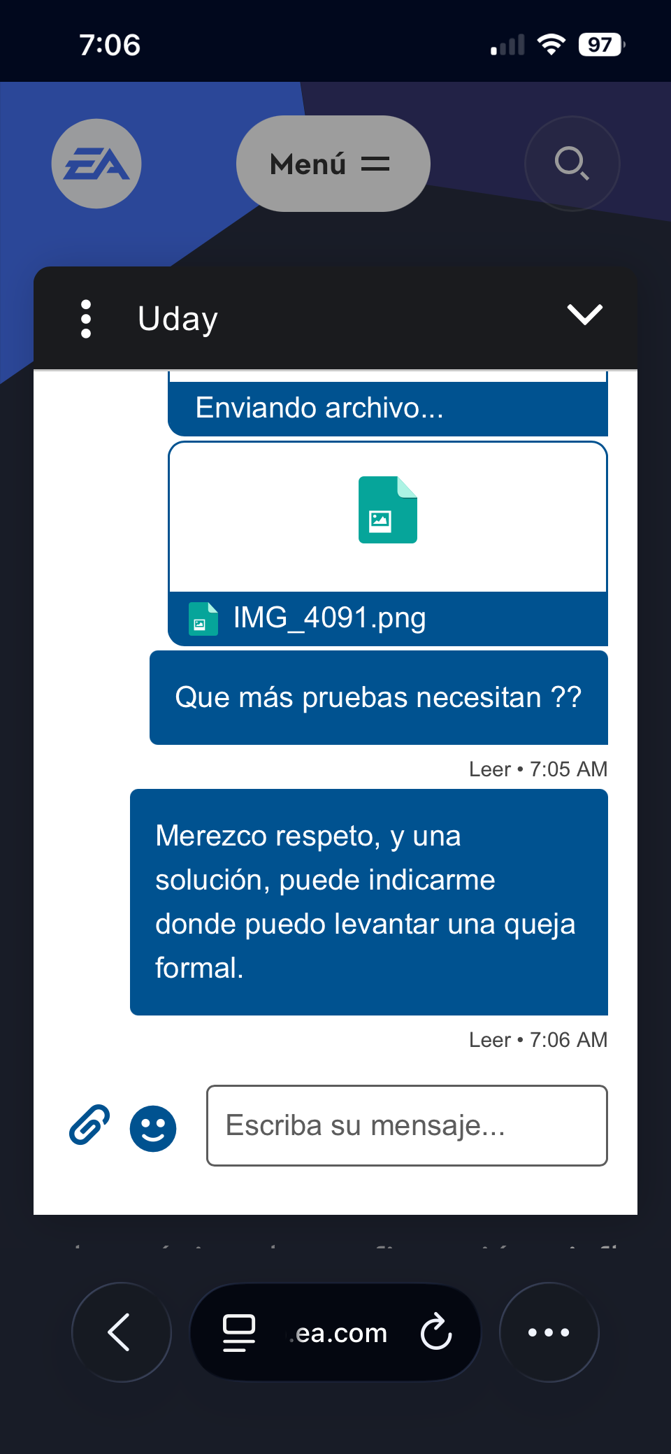 Es increíble como pese a todas las pruebas: capturas de mi inventario en Twitch, documento de Twitch donde avalan que efectivamente si reclamé en tiempo y forma las recompensas y más de una decena de reportes al soporte de EA informado este problema, y me salgan con que no cumplo con los criterios, ja ! Me parece una burla.