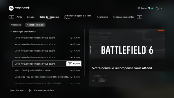 Je viens de terminer toute la campagne de drops twitch de lancement de BF6, mais je ne les reçois pas dans le jeu sachant que tout mes comptes son liés (twitch / ea / steam)