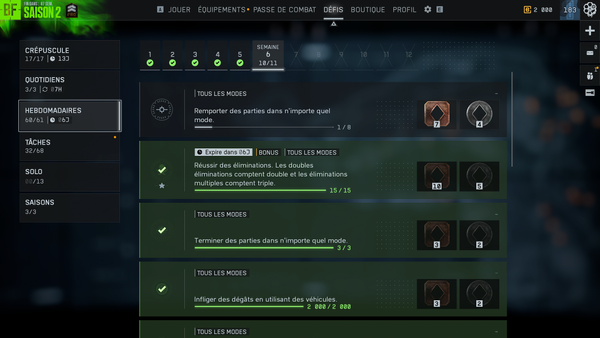 comme le montre mes captures j'ai terminer tous les défit crépuscule et également hebdomadaire ou il en reste plus que un .