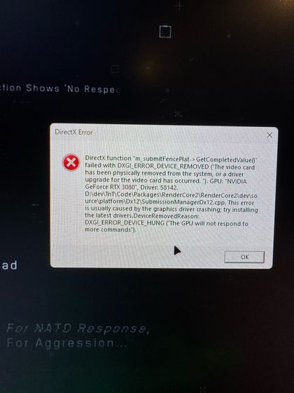 Bn giorno, premetto che già dalla beta 1 di sett scorsa ho lo stesso problema. Continua a crashare/freezare il gioco a random mentre gioco (e a volte anche nel menù principale). Senza forzare "-dx11" mi esce l'errore come da immagine allegata