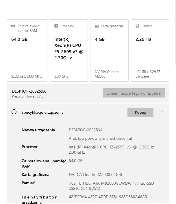 Problemem jest karta graficzna NVIDIA Quadro M2000 (4 GB). To karta stworzona do pracy CAD, renderingu i grafiki inżynierskiej, a nie do gier. Choć technicznie uruchomi Battlefielda, to w praktyce – nawet na najniższych ustawieniach – gra będzie działać bardzo słabo (poniżej 30 FPS w 1080p). Jeśli planujesz grać, minimalny komfort uzyskasz dopiero na karcie GTX 1660 / RTX 2060 lub nowszym.