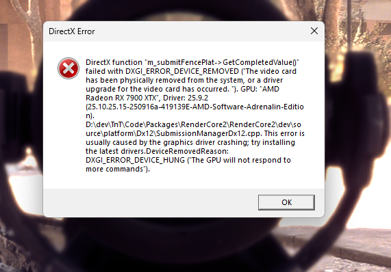 Problem crash Battlefield6 DXGI_ERROR_DEVICE_REMOVED/DXGI_ERROR_DEVICE_HUNG