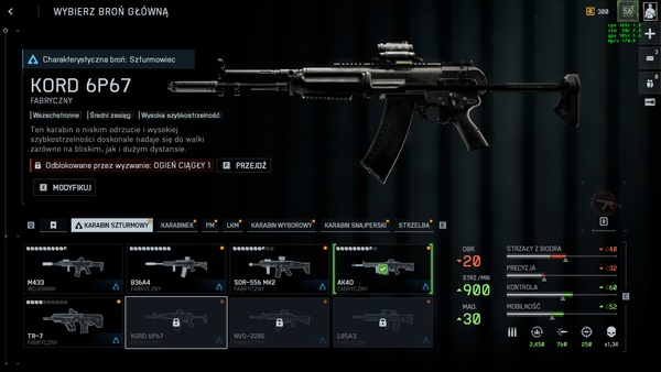 Wyzwanie „Ogień Ciągły” nie odblokowało broni KORD 6P67 (bug progresji)