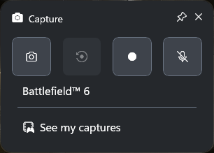 При этом если закрыть Battlefield 6 и зайти например в Counter-Strike 2 и нажать комбинацию кнопок - всё работает и ролик записывается. Что прямо говорит о том, что проблема не в XBOX Game Bar и он работает как положено.