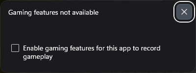 Однако после какого-то из обновлений - перестала и выдётся ошибка. Точнее не получается разблокировать функцию. Включение "Enable gaming features for this app to record gameplay" ничего не даёт. Сообщение появляется вновь. Как будто включение не применяется.