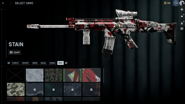 С размерами кнопок можно поиграться, чтобы они не закрывали другие кнопки, как на скриншоте с моей фантазией, на в целом идея такая - нижняя кнопка, рядом с charms и stickers, меняет камуфляж всего оружия и тюнинга целиком, а кнопка для конкретного вида тюнинга меняет камуфляж только на этом элементе тюнинга. Да и вообще, с камуфляжами какая-то беда - какие-то камуфляжи меняют только корпус оружия, не меняя окрас тюнинга, а какие-то меняют все элементы оружия целиком. Не очень понятна логика такого решения. Например, камуфляжи Black swamp и Blowout - первый меняет только корпус оружия, а второй все элементы: