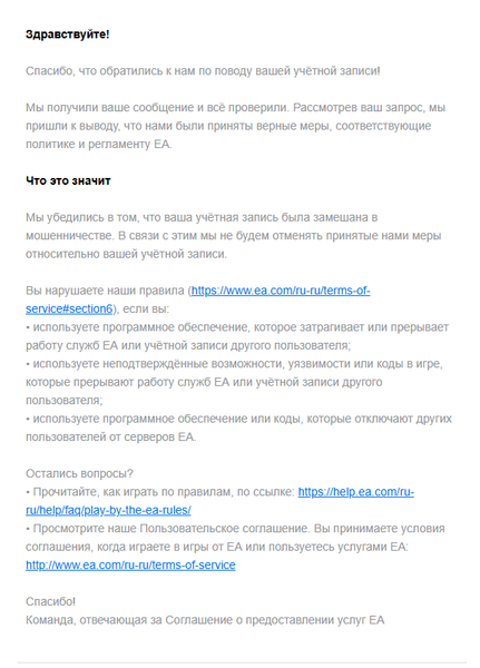 Столкнулся с таковой проблемой, играл несколько дней в новый продукт Battlefield 6, проблем не было.Последний раз заходил в игру порядка 14 часов назад с момента написания данного поста.Соответственно закончил играть, ушел на работу, вернулся с работы и захотел поиграть в Battlefield 6, но при запуске игры получаю уведомление о том что у меня перманентная блокировка доступа к игре Battlefield 6 и как бы не понимаю в чем дело?!С моей стороны в текстовом и голосовом чате игры матов и оскорблений не было, читами я не пользуюсь, в ИГИЛ и Алькаиде не состояю, наркотики не продаю, гендеров различных принадлежностей не оскорблял, за что я мог получить бан?! Оповещений на почту с причинами блокировки не получал. На самом аккаунте в разделе нарушений пусто. Написать апелляцию пробывал уже порядка 5 раз, но в моих заявках после не отображается не одна.В чем же дело. Заплатить 10к за 25 часов игры, чтобы тебя забанили неизвестно за что?!