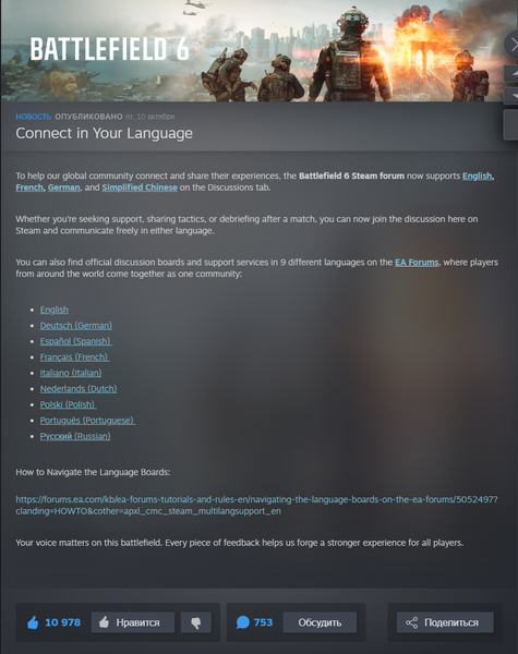 Просьба вернуть поддержку русского языка в Battlefield 6