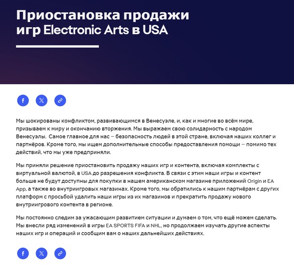 Уважаемая команда EA,