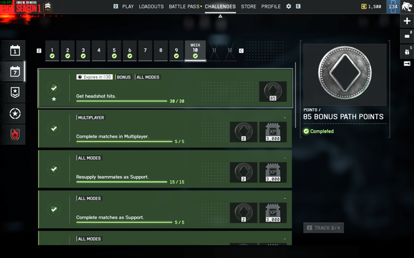 Мной были пройдены все челленджи 10 недели в первый день выхода bonus Battle Pass path и ранее не было награды 85 монет, на следующий день в выполненном бонусном челлендже нарисовалась награда в 85 монет. Вопрос, когда будет фикс этой ошибки и когда я получу 85 монет для прохождения bonus Battle Pass path? ОСТАЛОСЬ 3 ДНЯ ДО ОКОНЧАНИЯ BATTLE PASS!!!🤬🤬🤬