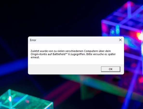 Nun kommt seit ca. 12 Stunden die Meldung. Nutze EA als Launcher.