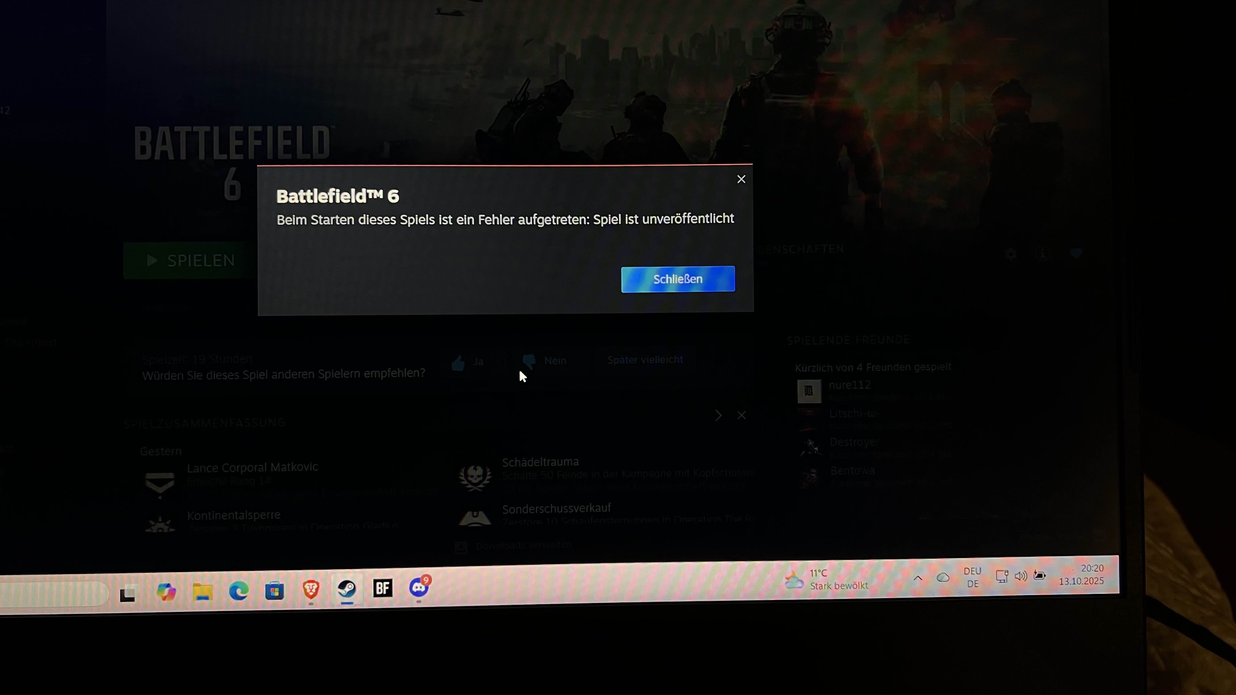 Hab das spiel gestern über Nacht installiert und heute auch bereits schon gezockt jetzt musste ich einen Neustart meines PC´s machen und plötzlich kann ich es nicht mehr starten weil Steam sagt das es nicht Veröffentlicht ist. Ich habe bereits die Installationsdateien auf Fehler überprüft und den Cache geleert jedoch ohne Erfolg. Was kann ich noch tun.