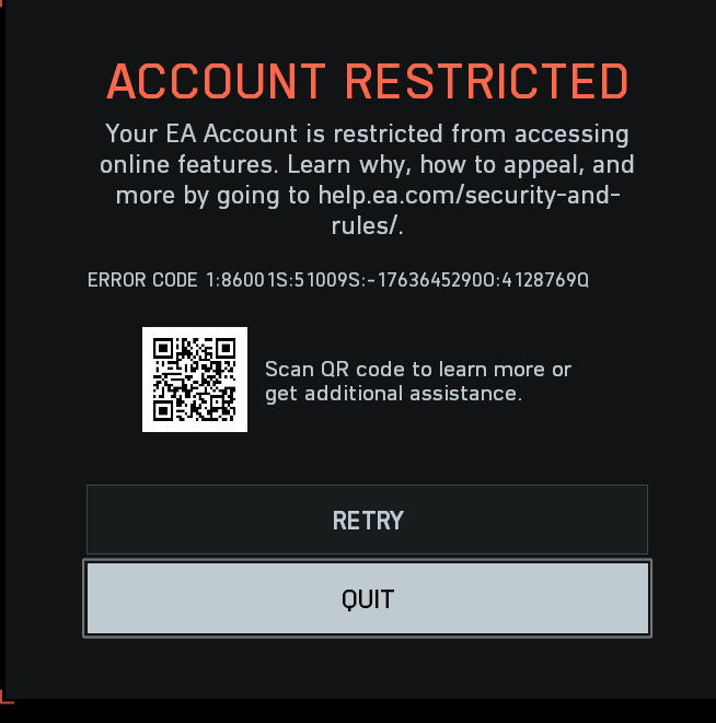 did you refund the game? I purchased on EA the day before release and the game was unplayable during the first few days, I saw someone from DICE suggest getting a refund from EA for the EA app version and purchase the game on steam. I thought I'd try and play Redsec on the EA app so I downloaded it again as on steam redsec is almost unplayable and I barely finish a whole game. I started the game on the EA App and it said my account was restricted when it tried to connect to multiplayer, I knew it can't be so and must have been because I refunded the game on EA. I switched back to Steam and I can play no problem but my game always crashes anyway.