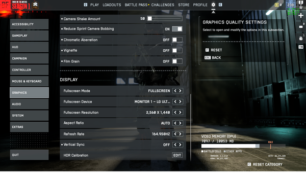 The above photo has been happening before recent updates, however, moreso after. This will also occur in 'Lobby' while in queue for a match and carry over into the match. I have found Alt+Tab in and out of the game to artificially 'fix' this visual issue in the 'Lobby.' However, without Redeploying or upon player death, these visual obstructions do not cease if carried into the match itself. (The photos here are from two different matches in the same launched session.) Note: All photos are Streamer Mode for privacy.