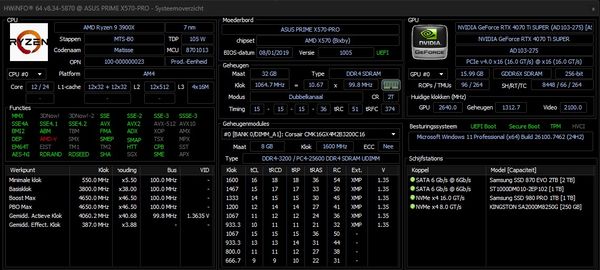 Belithraldir thank you for posting the HWiNFO screenshot. XMP memory overclocking doesn't appear to be enabled. The memory is running at 2133MHz instead of 3200MHz.