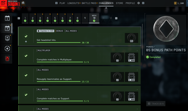 I don't know if I am the only one who has had the issue but I had already completed the weekly challenges in week 10 when they added the 85 points for the bonus path. The game did not reward me the points so I can't complete the bonus path. I am playing on X box series X, has any one found a fix for this? I have reset my game a few times but nothing is rewarding the points it says I should already have