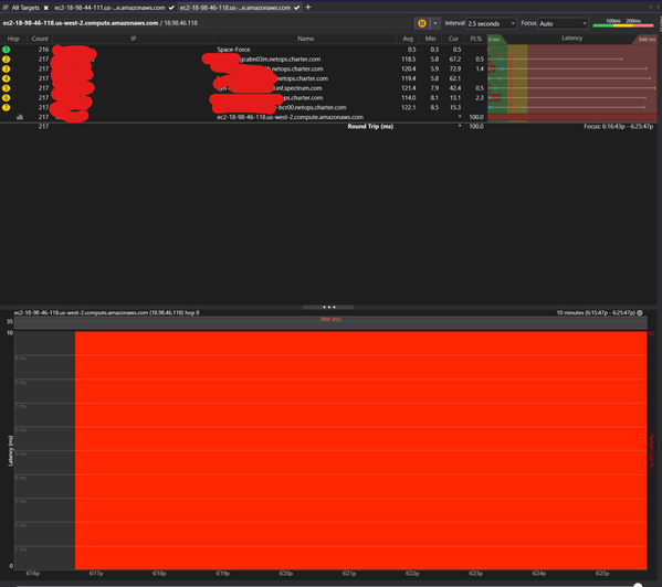OskooI_007 Ok, here's the traceroute, I blocked the IP stuff out because TBH I don't know what any of it means. I just see that the AWS address is all red?