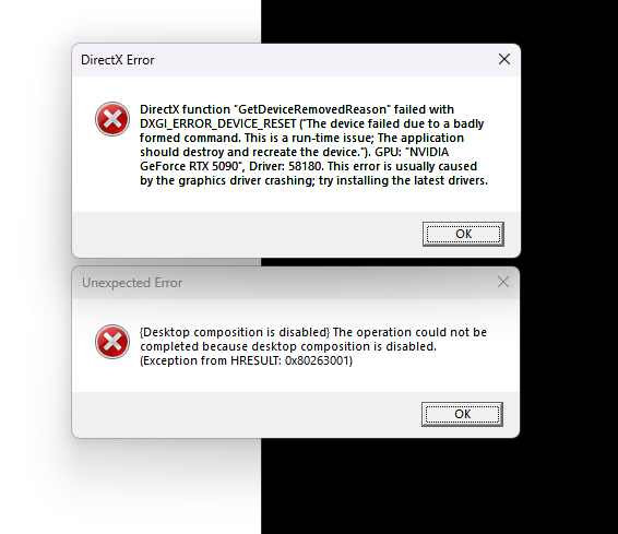 No worries, I didn't take what you said in a negative way. I get some version of the Directx error in the attached screenshot (sometimes instead of RESET it says HUNG. No event viewer errors related to BF6/EA (which matches what people say about it crashing to desktop sometimes with no error) but I have about 15 CrashDump errors in the BF6 folder. I generally agree that usually its a hardware issue but I don't think that is the case here. Only because I happened to have a second desktop PC and a laptop and it's happening with that too. And it only happens with BF6, I tried other demanding PC games like Cyberpunk and I ended up playing for hours with no issues. And I guess these issues have popped up in prior BF titles. It seems as the game gets patched, the more it pops up. And everyone lately seems to be reporting that the issues started around the same time of the patch which is the case for me.