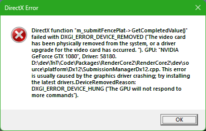 When the crash happens after you’ve been playing for a while or switching between games, it’s often related to VRAM management, API mode (DX12 vs DX11), or a corrupted shader cache, Because you can play other games fine, it’s almost certainly not a hardware fault ( I hope ) but rather a specific instability between BF6 (Redsec) and your DirectX / driver / game config. Also mild or factory OCs can trigger this error under DX12.