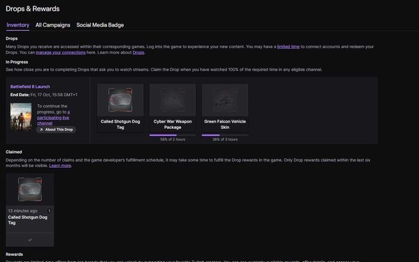 Details: I have received all my beta, preorder and phantom edition skins but not the twitch drop ones. How or where: TWITCH Drops